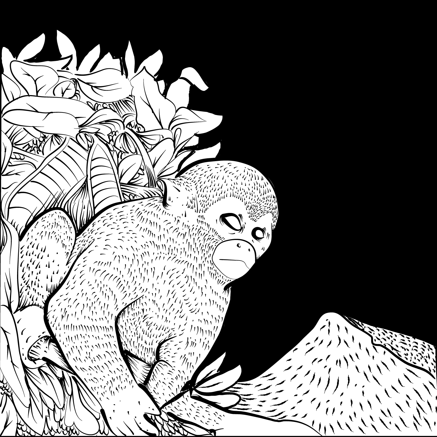 Trabajo en proceso por encargo. Para el que se plantea desarrollar una serie de ilustraciones digitales en blanco y negro para acompañar una recopilación de cuentos originarios de la comunidad amazónica Zapara. Para este trabajo se busca una estética basada en las descripciones de miembros de la comunidad, y en el trabajo del investigador principal Rubén Diaz.
